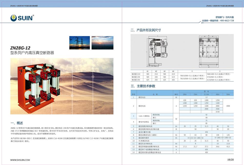 ZN28G-12型系列户内高压真空断路器,是三相交流50Hz,额定电压12KV的户内高压电器设备,采用断路器和操动机构一体化的结构,内配CT19型弹簧操动机构或CD17型电磁机构,即可用于手车式开关柜,也可用于固定式开关柜,可供工矿企业、发电厂、变电站中作电器设备的保护和控制之用。适用于频繁操作的场所。